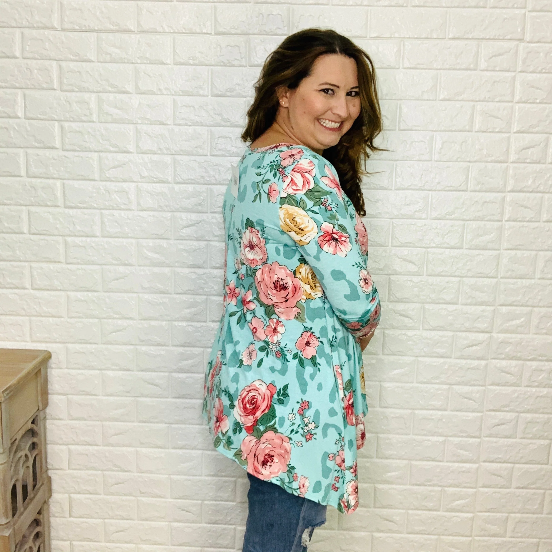 "Floating On Air" (Mint) 3/4 Sleeve Shark Bite Hem