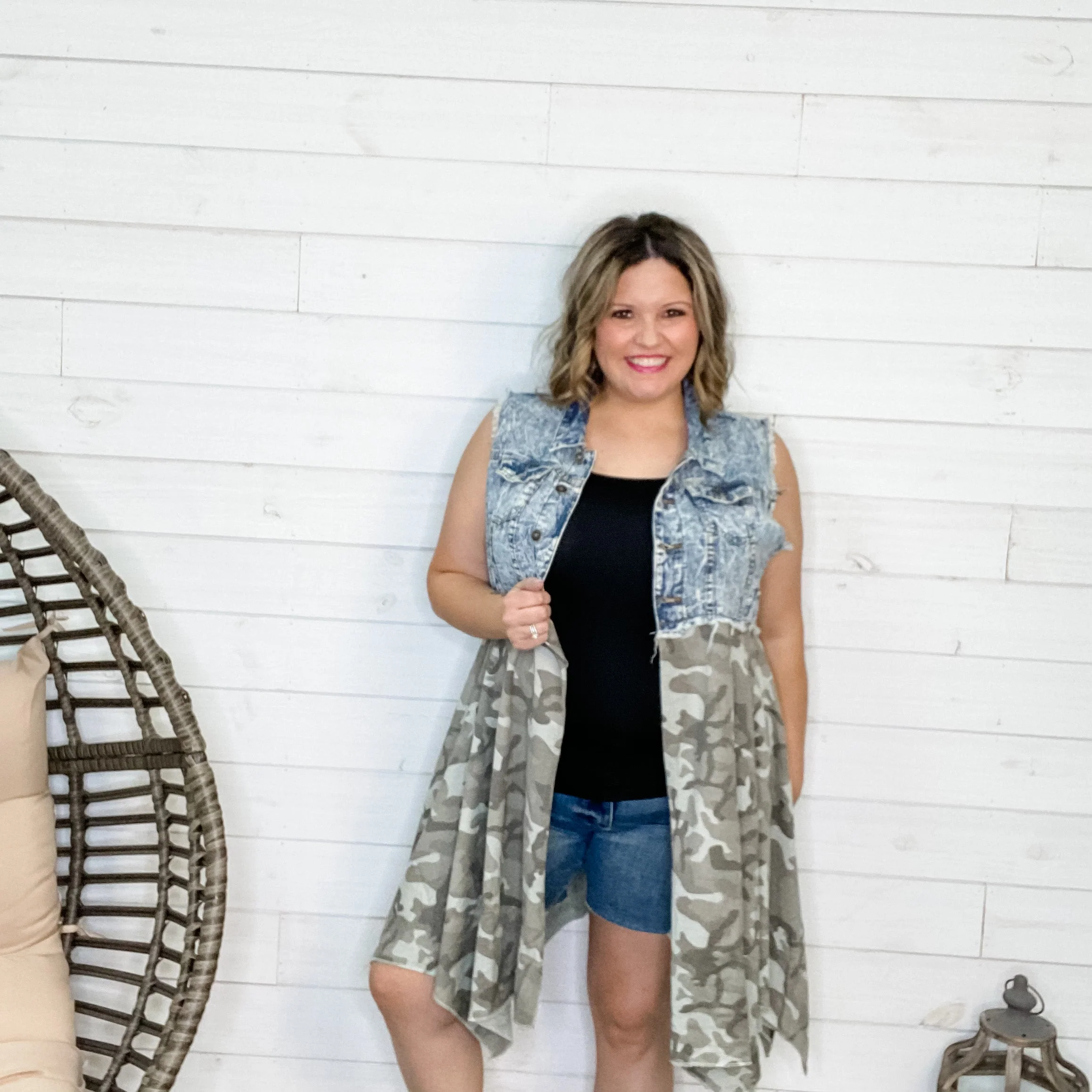 -70%"Yasmine" Denim & Camo Vest Tunicā
