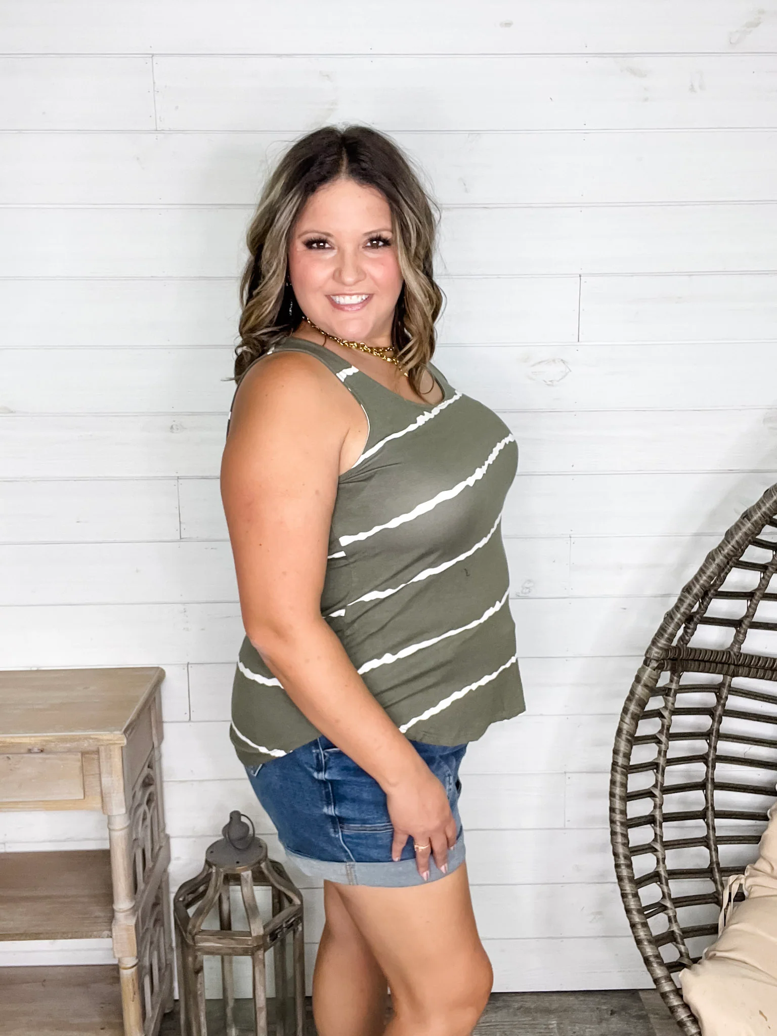 Stay cool and comfy in the "Zigged Should Have Zagged" Relaxed Fit Tank, available in black and olive. This lightweight tank offers just the right amount of stretch for easy movement, making it perfect for laid-back days or casual outings. Designed to fit true to size, itās your go-to top when you want to keep things effortlessly stylish with a playful twist.
